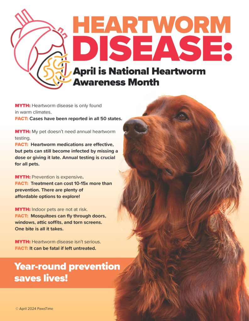 HEARTWORM DISEASE: April is National Heartworm Awareness Month MYTH: Heartworm disease is only found in warm climates. FACT: Cases have been reported in all 50 states.